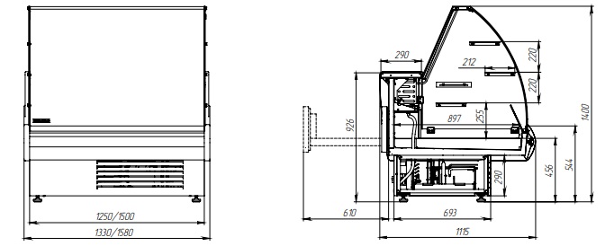 Якщо вітрина MUZA K 1.5 не підходить Вам за своїми розмірами, тоді холодильна кондитерська вітрина MUZA меншого розміру – це модель MUZA K 1.25.