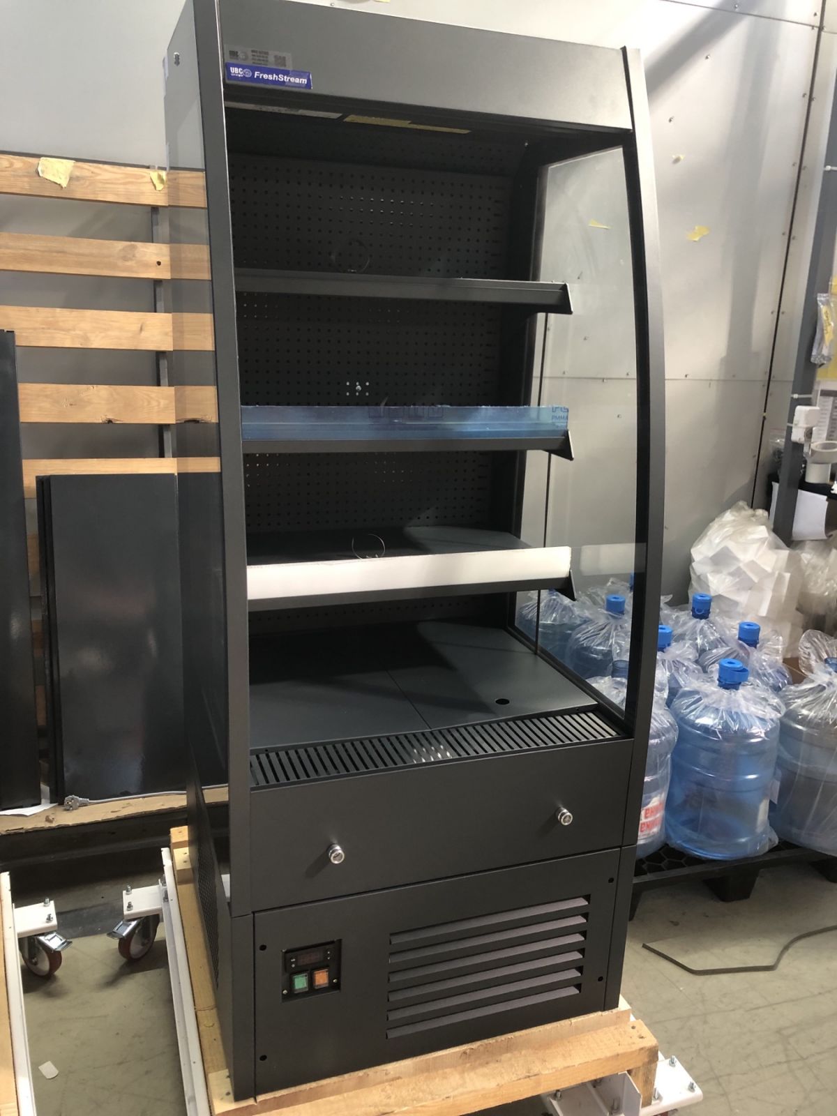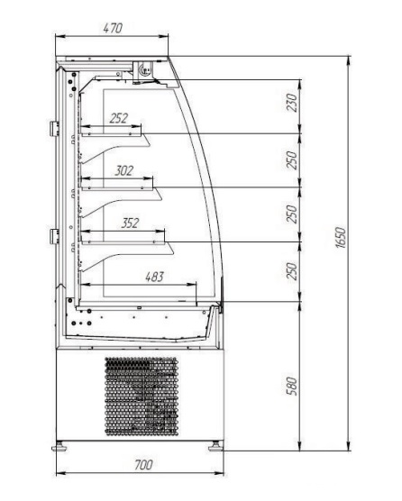 - 3 рівні підсилених навісних полиць, що регулюються по висоті та куту нахилу, з акриловими обмежувачами та цінникотримачами